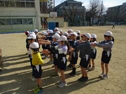 1年生の4時間目の授業風景です。最後のまとめの場面となります。ここで、教師の声かけの工夫が光りました。整理体操で「だるまさんが 肩回しをした」。次に、「だるまさんが 前へならえをした」との声かけが。子供たちも集中して聞いて、その動きをしていました。何気ない声かけですが、子供たちの動きはぴかぴかです。見ているこちらも気持ちの良い動きができていました。すごいぞ、1年生!