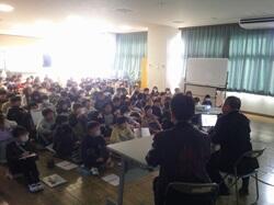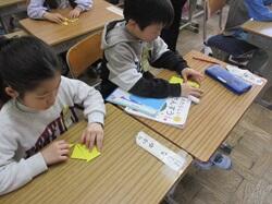 毎年、3年生のお楽しみイベント「紙ひこうき教室」が開催されました。講師の先生として、木村範夫先生をお招きしての教室です。よく飛ぶ紙ひこうきの作り方を教えてもらい、子供たちは思い思いに飛ばして遊びました。よく飛ばない時の修正ポイントも教えてもらい、何回も何回も試行錯誤を繰り返し、最後にみんなで競争をしました。紙ひこうきは、新聞紙でも、広告の紙でも簡単にできる遊び道具です。ご家庭でもお試しください。よく飛ばすコツは、ぜひお子さんに聞いてみてください。