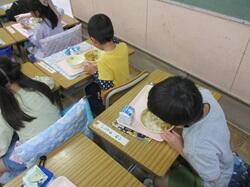 1年生の給食開始日です。今日は、給食準備のため、4時間目を少し早めに終わりにしました。子供たちも初めての給食にそわそわしていたようです。先生の話を聞く表情も真剣そのもの。しっかりと聞くことから物事は始まります。そのような姿に、今後の日々の授業につながるものと感じました。これから、給食をいっぱい食べて、遊んで、たくさんの友達をつくってください、1年生の元気な東北っ子の皆さん。