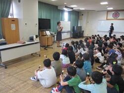 1年生が校内たんけんをしました。校舎内のいろいろな教室を見て、学校にある施設をおぼえていきます。多くの教室を回ったので、どこにどの教室があったのか、覚えるのもひと苦労だと思います。写真は、校長室を見学に来た時のものです。お家でも学校にどのような教室があったのか、聞いてみてください。新たな発見があるかもしれません。