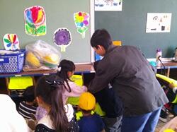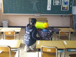 1年生の朝の教室です。6年生が1年生の教室に行って、お手伝いをしています。1年生もやさしいお兄さん、お姉さんに囲まれて嬉しそうです。このような縦割りの活動は、心の豊かさにつながります。自分でできるようになるように、そして、6年生にできるようになったことを伝えられるように。今の時間を大切にしてほしいと思います。