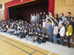 今日は、6年生を送る会です。1年生から5年生は、毎朝の通学班をはじめ、遊友タイム(縦割り班活動)、クラブ活動、委員会活動等、学校生活の中で6年生のお兄さん、お姉さんに励まされてきました。各学年からの出し物では、応援・エールが多く見られました。どの学年も多くの感謝の言葉が見られました。そして、6年生からは、「東北小のみなさん さようなら ありがとう」の歌が。最後に、6年生からの言葉のプレゼントが送られました。「1年生笑顔、2年生愛嬌、3年生一生懸命、4年生団結、5年生躍進」です。心温まる会となりました。6年生の皆さん、小学校生活もあと16日となりました。