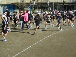3月の体育朝会です。1、2年生は体育館。3年生以上はグラウンドでの運動時間です。体育館では、体じゃんけんが行われていました。グラウンドでは、3、4年生がサーキットトレーニングです。走って、投げて、跳んでと多くの運動要素が盛り込まれていました。5、6年生は、走る運動です。ただ走るのではなく、先生とじゃんけんをしてのかけっこ。勝つと短い距離、負けると長い距離の運動です。どの学年も一生懸命運動に取り組んでいました。