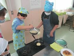 マーガレット学級の調理実習です。今日の調理は、「ホットケーキ」です。みんなで協力して準備をして、いざ自分の食べるホットケーキをフライパンに。こがさないように、グループ内で声をかけ合う姿がすてきでした。おいしくできて、食べて。その後はお片付け。ここまでがもちろん学習です。最後まで協力して楽しい時間となりました。「マーガレット学級の皆さん、おいしかったですよ。ありがとう。」