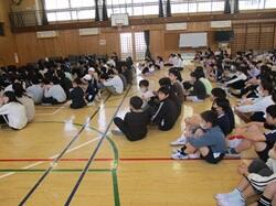 不法侵入者が校内に入った時の緊急時の避難方法を学ぶ訓練を実施しました。各教室では、廊下側の入り口にバリケードをつくり、まずは第一行動です。そして、その後は、状況が把握できるように静かに待つという行動となります。今日は、放送及び教員の指示に従い行動することができました。少し話し声が聞こえてきたのは、反省点となります。ここは、今後の課題として、対策を練っていきます。